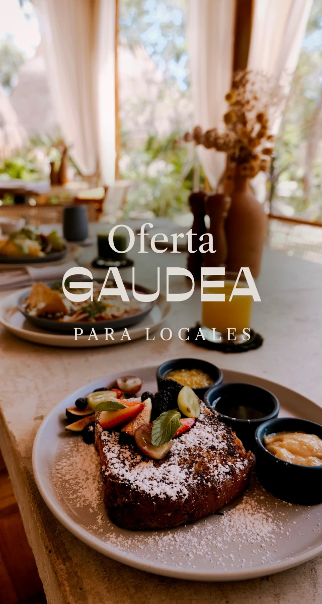 En Gaudea Restaurant, cada plato está inspirado en la riqueza de la auténtica cocina mexicana con ingredientes locales como el maíz, el chile chipotle o el huitlacoche con toques de sabores mediterráneos como aceitunas, pescados y trufa blanca; para que disfrutes de aromas, texturas y hermosos colores en un entorno relajante y natural. Solo presenta tu identificación de Quintana Roo y ten una experiencia gastronómica que deleitará tus sentidos.